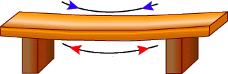 Label the diagram of a simple beam bridge by labeling the forces "compression" or "tension" where they belong: