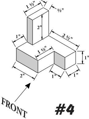 DIRECTIONS:    You must first print the worksheets in order to complete this activity.  Look at the shape below and complete an Orthographic Projection drawing for it. (front, top, right side, dimensions and isometric sketch)  It might help you to use the drawings we did during class as a reference.   When finished with the drawing, bring it to class and hand it in to Mr. Whitman.  (Worth up to 30 points)